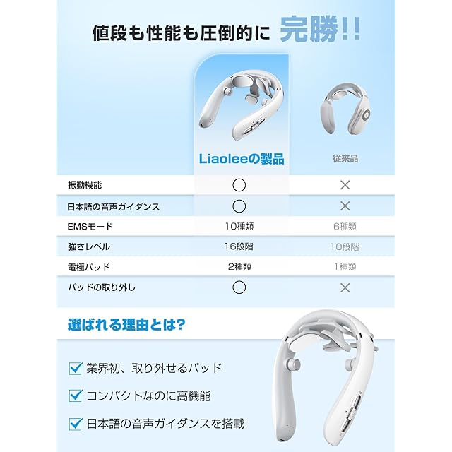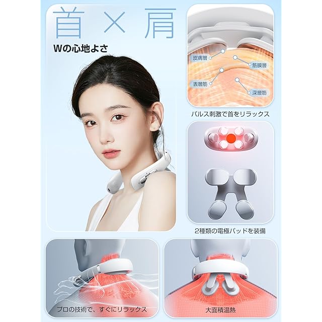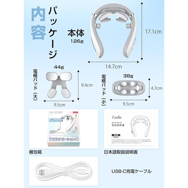 商品名:ネックケア 首 肩 リラクゼーション器 Liaolee 新傑作 母の日プレゼント EMS&TENS 振動 温熱 ネックリラックス 日本語音声ガイダンス コードレス 静音 軽量 温熱 10種類モード 16段階強度調節 USB-C充電 取り外せるマグネットパッド リラックスグッズ 父の日 母の日 記念日 誕生日プレゼント お祝い 男女兼用 日本語説明書を同梱