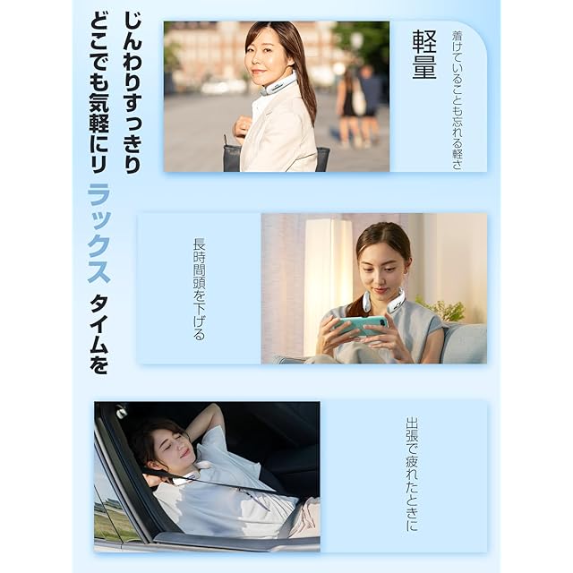 【人間工学に基づいた超軽量設計】柔軟なフレームと隙間を防ぐ設計により、優れたフィット感を実現し、動いてもズレないような構造に仕上がりました。こちらの首元リラクゼーション機器は超軽量、ボディがコンパクトで、動きの邪魔にならず、装着していることを忘れてしまうような超軽量設計となっており、首に余計な負担をかけないリラックスアイテムとなっています。肌触りの良い素材で、肌に優しく、着け心地も抜群です。