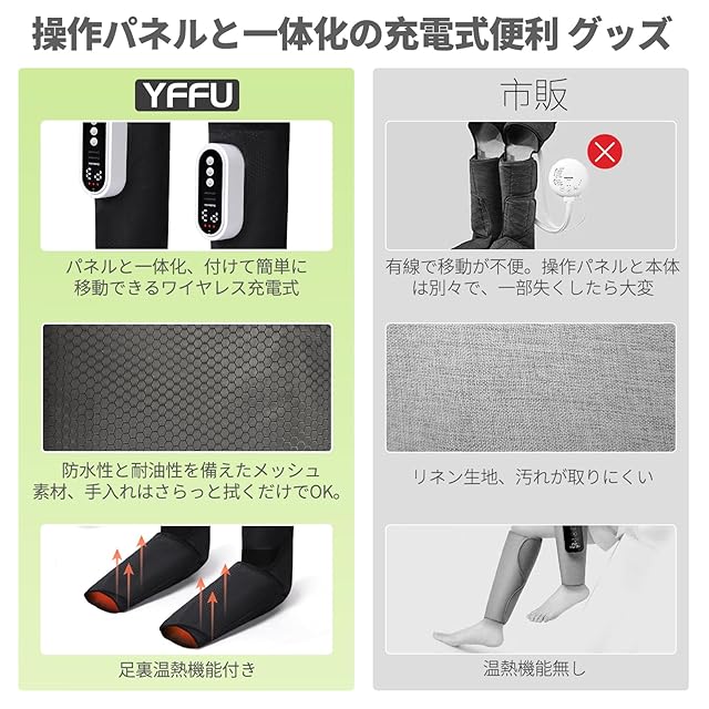 商品名:フットケア 2025年新型 足リラクセーション 2個セット 2つの大型連続大容量エアバッグ 足裏ぽかぽか ふくらはぎ すね対応 3段階足温感 3段階強度 3モード コードレス 充電式 リラックス タイマー機能 自動オフ 装着型 折り畳み可能 静音 足裏ケア コンパクト収納 家庭用 男女兼用 プレゼント 敬老の日 母の日 父の日 日本語取扱説明書