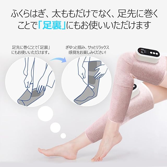 【足・脚全体を使用可能】ふくらはぎ、すねから太ももだけでなく、足先に巻くことで「足裏」にも使え、実にお買い得な製品です。※充電しながらのご使用はおやめください。※ご注意:素肌で温熱を利用するのをご遠慮ください。※温感部は膝だけに取り付けています。全体ではありません。