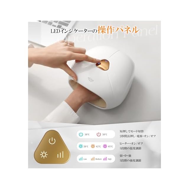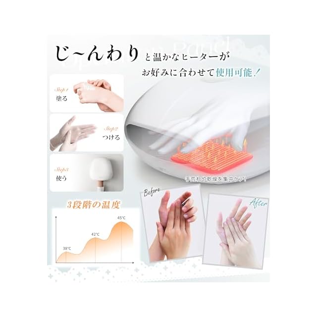 【手の日頃のハンドケア】ALLJOYハンドモミグッズのヒーターが、温度は38℃、42℃、45℃、3段階の温度で調整可能です。(※温熱OFFでも使用可能)また、ハンドクリームや手袋と併用で本製品を使用することをおすすめです。日頃から気になる手荒れや乾燥を集中しましょう!