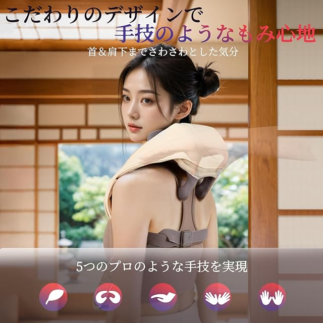 【コードレス設計、両手を解放・かける可】USB-C充電式設計で、使用時に電源に接続する必要はありません。仕事中に椅子に座りながら、リビングでテレビを見ながら、ソファに横になりながら楽しめます。コードレスで使えるネックリラクゼーション器が便利です。バックルストラップのデザインにより、掛けたままでリラックスできます。