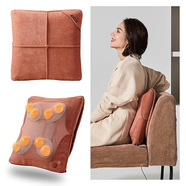 【その他機能】電源ボタンが凸になり、手探りでの使いやすさを向上。押し間違いにくく、すっきりしたフォルムになりました。ヒーター内臓であたためながらマッサージが可能。持ち運びに便利な取っ手付き。クッションカバーは取り外して洗濯可能。約15分で停止するオフタイマー付き。