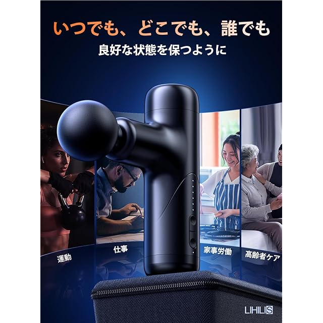 【高性能Alチップ搭載・安全性耐久性が満点・プレゼントに最適】Lihilisのmini筋膜リリースガンは、安全性をつかさどる高性能AIチップを搭載。電圧制御、電圧ショート保護、高温保護、過過電流保護など10項目に及ぶ保護機能を備え、使用感を快適にしました。老若男女に適しており、贈り物に最適です!日常の使用に非常に適しており、忙しい生活の中でも良好な状態を保ちます!長年、新技術・新製品を創造し続けています。そのために、研究開発に力を注ぎ続けています。常に業界トップクラスの品質を守り続けています。本製品は2年間の期間が付いています。万が一、商品に不具合が生じた場合には、弊社までご連絡いただければ、迅速かつ日本語で対応いたしますので、安心してご利用ください。パッケージ内容:軽量ミニ筋膜リリースガン×1、充電用USBコード×1、アタッチメント×4、収納用ケース×1、日本語取扱説明書×1