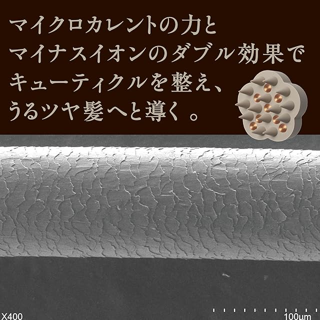 【キューティクルを整える】G-ZERO COILから発生するマイクロカレントの力とマイナスイオン効果で傘のように開いたキューティクルを 整え、うるツヤ髪へと導きます。
