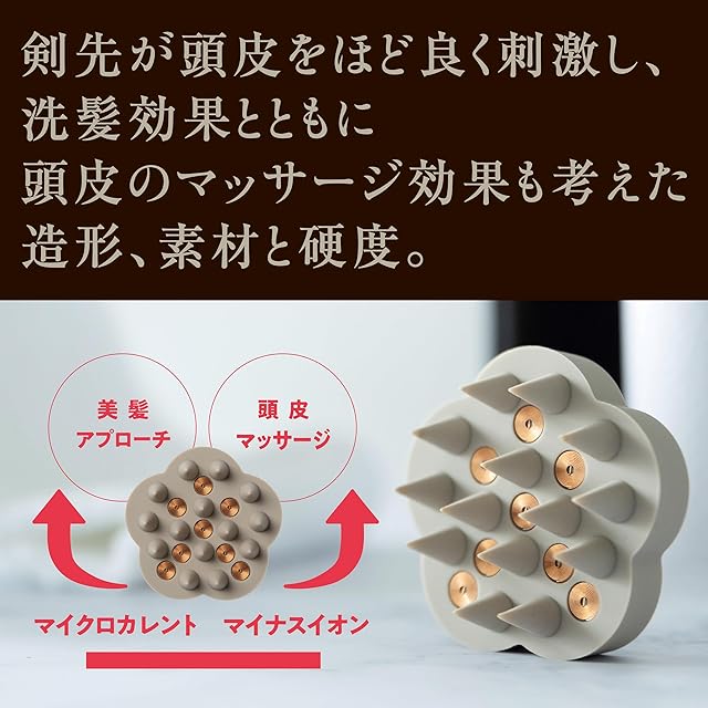 【頭皮へのマッサージ効果】 洗髪の際に剣先が頭皮をほど良く刺激し頭皮へのマッサージ効果を考えた造形に、シリコン強度をアップさせながらもPRO同様の頭皮触感を保ちつつ剣先の摩耗を抑えました。