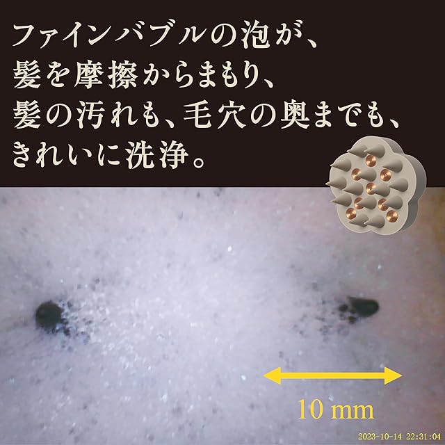 【ファインバブルの泡をきめ細やかに】マイナスイオン鉱石を配合することで従来のファインバブル化した泡の粒子をさらによりきめ細かくし、髪を摩擦からまもり、髪・頭皮の汚れ・毛穴の奥まで綺麗に洗浄します。