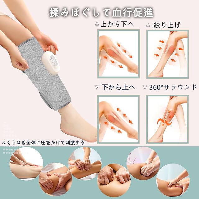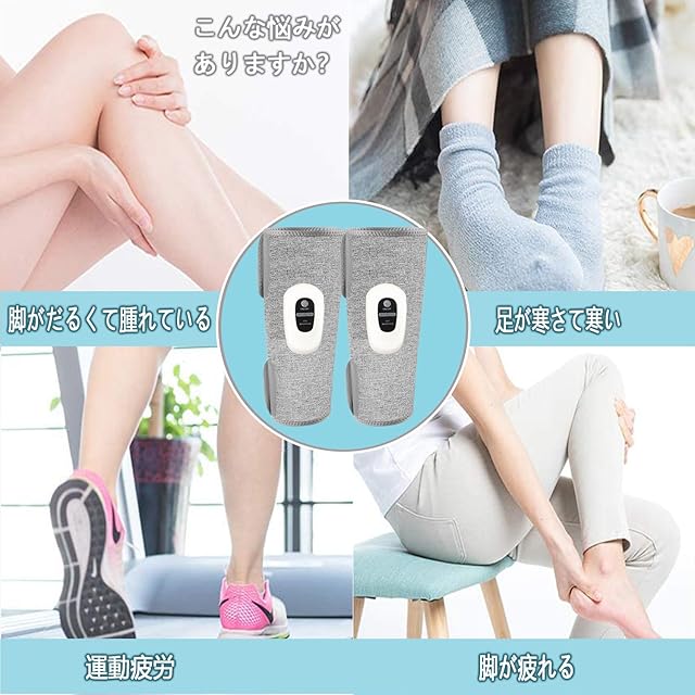 3動作モード ふくらはぎリラックス エアーレッグリラックス リラクゼーション器 フット ケア コードレス 強度3段階 15分タイマー自動OFF USB充電式 サイズ幅調整可 母の日 父の日 誕生日 敬老の日 プレゼント ギフト 家庭用 男女兼用 日本語説明書付き 持ち運び便利 (グレー)