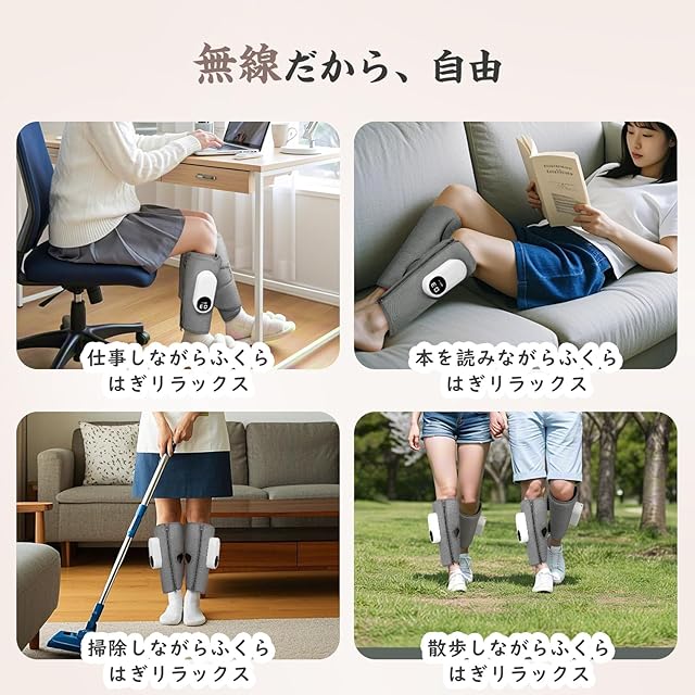 【どこでもプロ級リラクゼーション】ふくらはぎリラックス機はワイヤレス設計でコードの煩わしさから解放!手のひらサイズのコンパクトボディで旅行先でもオフィスでも、気軽にプロ級ケアが楽しめます。安心の15分自動オフ機能付きで、うっかり消し忘れても自動的に電源カット。省エネかつ安全に配慮した、スマートでエコな設計が特徴です。「もう充電切れの心配も、コード絡まりのストレスもない、真のモバイルケアを。」