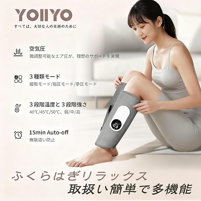 YOIIYO ふくらはぎケア ジッパー+面ファスナー 着脱易い 軽音 ふくらはぎリッラクス パワフル 空気圧 確実な耐久性 レッグケア 3つモード 3段階温度 3段階強度 15minオートオフ コードレス type-c充電式(2個入)母の日 父の日 プレゼント