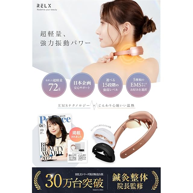 【整体院長監修】RELX リラクゼーション器 EMS 温熱(日本企業企画) 超軽量72g コードレス プレゼント ギフト ネックウォーマー 静音 (マットブラック)