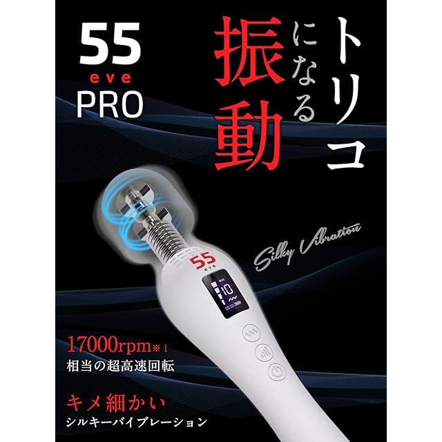 55evePRO コードレス最強クラス17,000rpm 液晶搭載プロスペック仕様 日本ブランド 4×10種振動 防水 シリコン素材 White