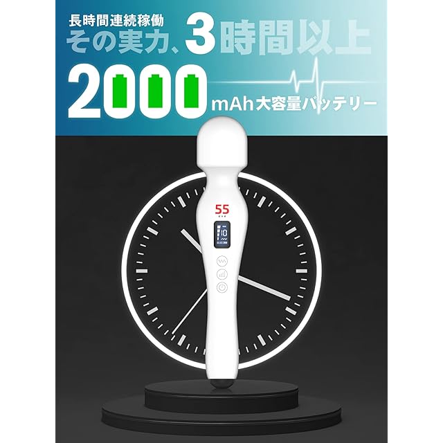 【 3時間以上、連続稼働 】 一般的な振動器の 約3倍 となる、2,000mAh 大容量バッテリーを搭載。熱くならず長時間働き続けます。