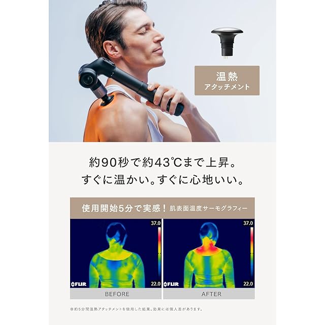 ブランド名: MYTREX(マイトレックス)/販売名: REBIVE EX PRO (リバイブ イーエックスプロ)/品番: MT-RBEX23B/本体寸法: 約239mm×98mm×81mm(本体折りたたみ時)約330mm×148mm×81mm(アーム角度90°・ハンドル最長時)/重量: 約690g(本体のみ、アタッチメントは含まず)/素材: 本体:PC-GF20、ABS樹脂、アルミニウム合金、アクリル、ステンレス、シリコンアタッチメント:ABS樹脂、シリコン、(温熱アタッチメントのみ次を含む:アルミニウム)/振動機能: 約1200回~3200回(分)/電気持続時間 最長 約8.5時間(低速・温熱機能オフ時),最短 約2時間(高速・温熱機能オン時)/定格時間 10分/使用環境:温度 5℃~40℃、相対湿度 ≦85RH%/パッケージ内容: 本体×1・充電用USBコード×1・アタッチメント×6種類・取扱説明書(書)×1・備品収納袋×1・アタッチメント用ストッパーゴム(予備)×2