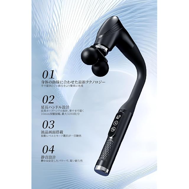 【12段階振動・3モード切替】この筋膜リリースガンは、10mmの深層振動で筋肉の奥までしっかり届き、12段階の振動強度・3モード切替、最大3200回転/分で幅広いニーズに対応。深い振動により、緊張した筋肉をほぐし、身体全体のリラックスを促進します。