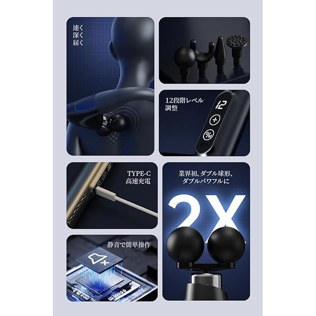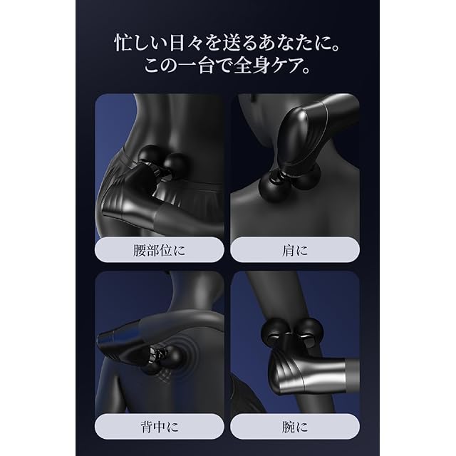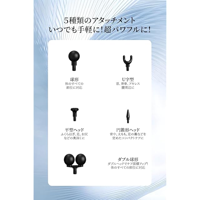 【革新の進化、5種類のヘッド】この筋膜リリースガンは、全身くまなく心地いい、届きづらい背中や腰にも。より快適な使用感を感じます。5種類の交換可能なアタッチメントヘッドが付属しております。パワフルさ、使いやすさ、機能性、圧倒的に届く、優れた機能をご体験ください!