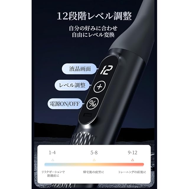 【液晶画面&Type-c充電&静音】液晶ディスプレイが搭載しており、現在の設定強度とモードを簡単に確認できます。操作が簡単で直感的です。通常使用時は 35dB 程度で、他人に迷惑をかけることなく、快適に使用できます。USB-C充電対応です。