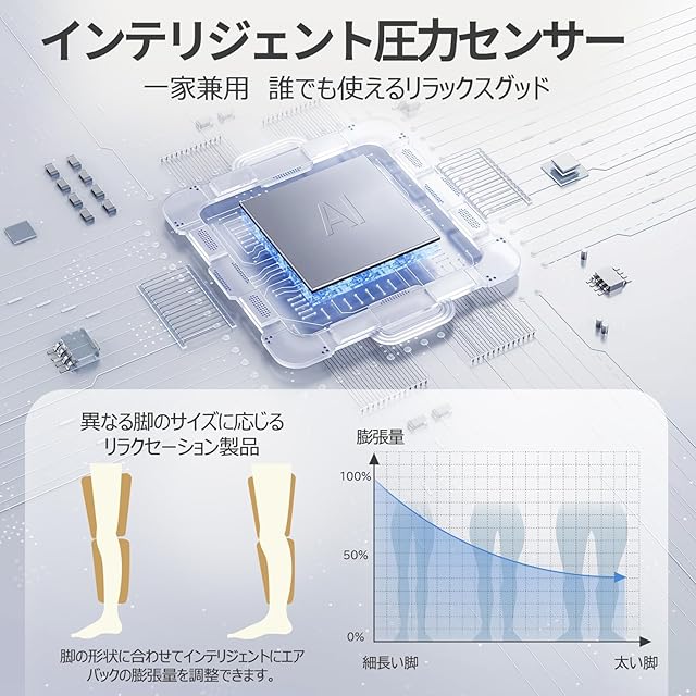 【足・脚全体をしっかりリラックス】多数のエアバッグが内蔵されており、気圧によて足の圧迫と解放を繰り返します。膝温熱との組み合わせで、作動中はまるで手でふくらはぎ リラックスさせるような体験を与え、仕事で立ちっぱなしが多い方にぴったり。多くの時間で歩いたり、立ったりした後に疲れたフットケアをホームで軽々サポートします。運動の後の足リラックスも役に立ちます。