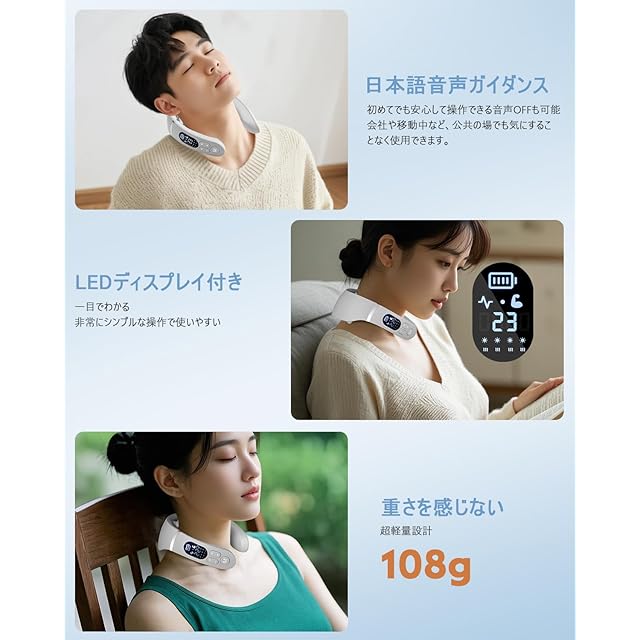 【2025新登場 】ネックケア 首 リラクゼーション器 6つパッド 温熱 EMS&TENSのW効果 12種類モード 22段階強度 静音軽量 Type-c充電式 液晶表示 日本語音声ガイダンス 簡単操作 男女兼用 出張 旅行 職場 プレゼント日本語説明書