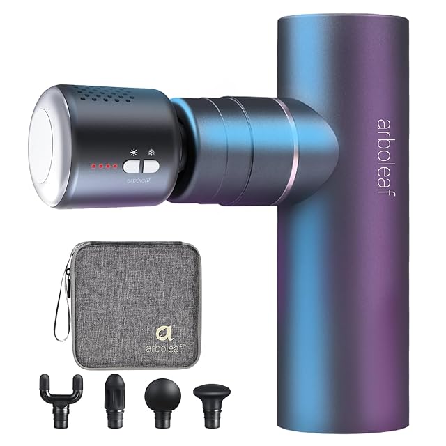 arboleaf 筋膜リリースガン ハンディガン MINI 温冷機能付きヘッド 自適応モード 5種類ヘッド 5段階強力振動 筋膜リリース 筋膜ガン Type-C充電式 大容量バッテリー付き 最速3200回/分 500g軽量 静音 携帯便利 収納袋&日本語取扱説明書付き プレゼント ギフト最適 日本国内サポート 一年メーカー