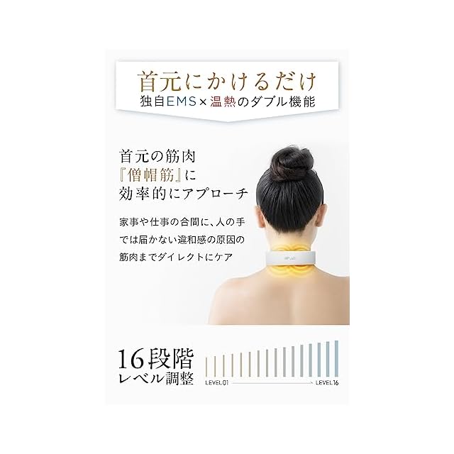 【2段階の温度調節+16段階の電気レベル】 2段階の温度調節が可能で、その日の気分に合わせてお好みの温度でご利用いただけます。(※温熱機能なしも使用可) また、電気レベルを16段階からお選びいただけます。 お好みに合わせてレベルを調整してください。 初めての方は、レベル1からご使用いただき、徐々にレベルを上げて、自分好みの強さでご使用ください。