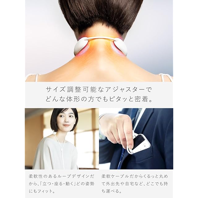 【浮かずに密着】NIPLUX NECK RELAX LOOPは、サイズ調整が可能なアジャスターを採用しており、どんな体型の方にもぴったり密着します。柔軟性のあるループデザインで、あらゆる姿勢にフィットします。首、腕、脚など、全身にもお使いいただけます。