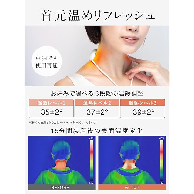 【じんわり温かい温熱機能】3段階の温度調整が可能で、お好みに合わせて設定できます。温熱機能は単独でも使用可能です。