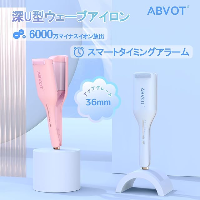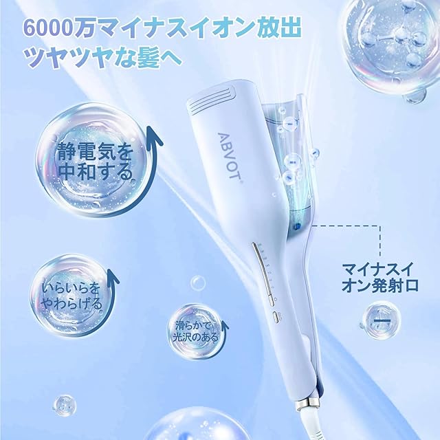 【6000万マイナスイオン放出&ツヤツヤな髪へ】ABVOTウェーブアイロン 36mmは6000万マイナスイオン放出して、静電気を効果的に中和すると同時に髪に水分を注入し、栄養を与えます。髪の芯を整え、髪質を強化します。