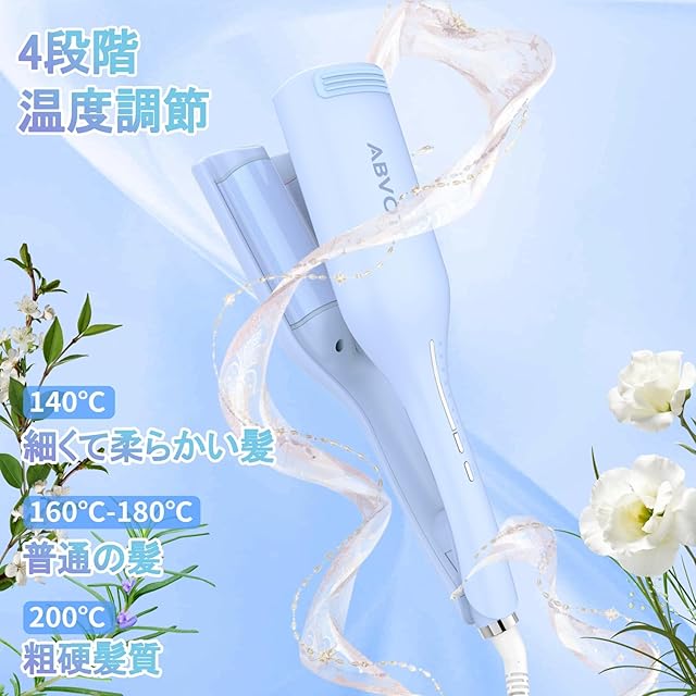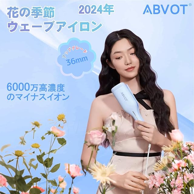 ABVOT <深U型>ウェーブアイロン36㎜ 花の季節 ヘアアイロン カール 2025年新型 5S-11Sリマインダーカールアイロン 140℃~200℃ 六千万級マイナスイオン吹出 韓国風カールヘアアイロン PSE認証済 日本語取扱説明書付き(クリーミーブルー)