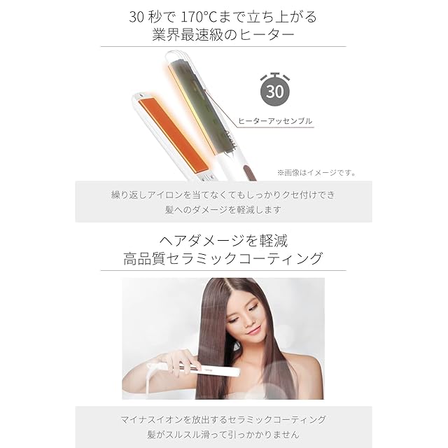 【ハイクオリティモデル】高品質で保温性の高いセラミックコーティングプレートを搭載し、ヘアダメージを軽減する機能を装備。朝の準備に時間をかけられない、髪のパサつきや乾燥を気にする方に最適なヘアアイロンです。