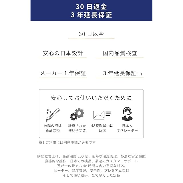 【 品質向上 】コード根本の構造・コードの形状・検品の強化を行いました。ケーブルを一日15回以上折り曲げても2年間持つよう品質管理を実施しています。※コードに1kgの重りを付け、1分間に6回の回転を12000回以上実施。もしトラブルが起きてしまった場合も製品を安心してお使いいただくために、メーカー1年・最大3年をお付けしております。万が一、故障の際は新品交換をいたします。※ PSE(電気製品安全法)適合性検査済み。