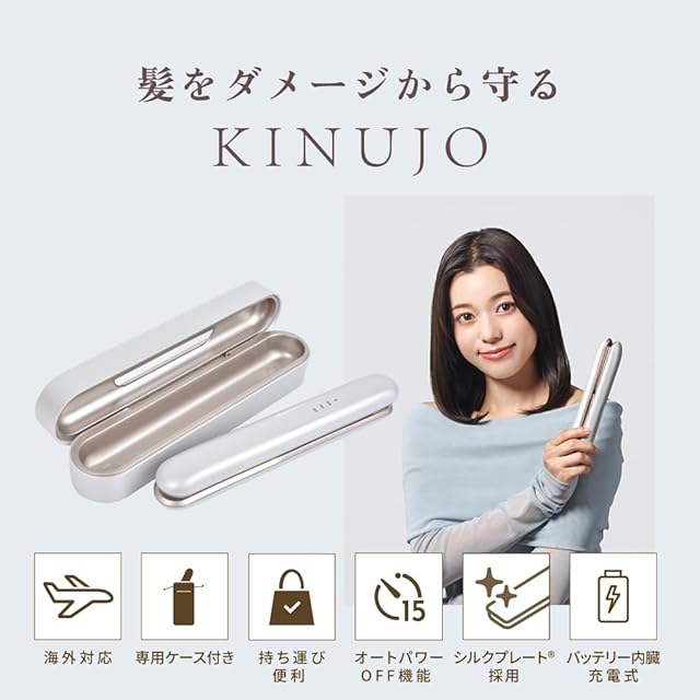 【公式ストア】KINUJO LuxeJewel- キヌージョ ラグジュエル コードレスアイロン シルクプレート® 最高200℃ ホワイト 海外兼用 37Lx3.1Wcm