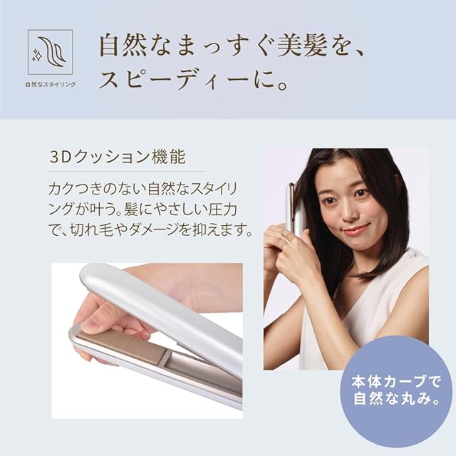 コードレス&超軽量だから、持ち運びラクラク。お出かけ先でも思い通りのヘアスタイルへ。 まっすぐストレートはもちろん、前髪や毛先のニュアンスカールも思いのまま。 シルクプレートが摩擦ダメージを軽減させ、髪の水分を保持。カラーの退色を抑えて、うるツヤ美髪へと導きます。 充電式なので、旅行や出張をはじめ普段のお出かけにもピッタリ。どんなときでも、自分が理想とする自分へ。