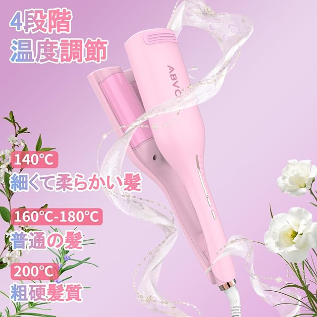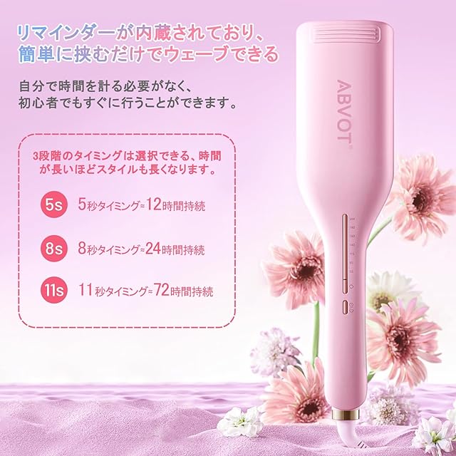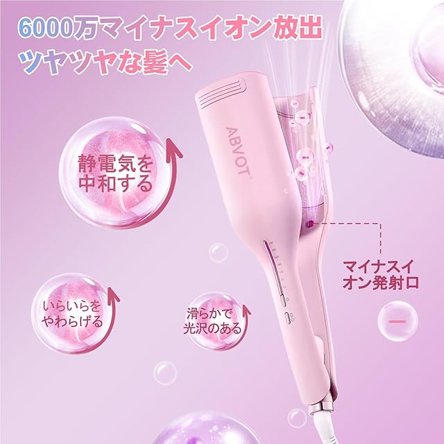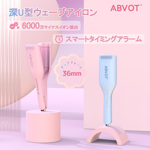 ABVOT HC11 <深U型>ウェーブアイロン36㎜ 花の季節 ヘアアイロン カール 2025年新型 5S-11Sリマインダーカールアイロン 140℃~200℃ 六千万級マイナスイオン吹出 韓国風カールヘアアイロン PSE認証済 日本語取扱説明書付き(サクラピンク)