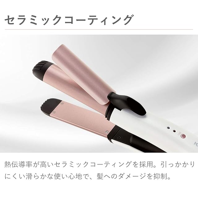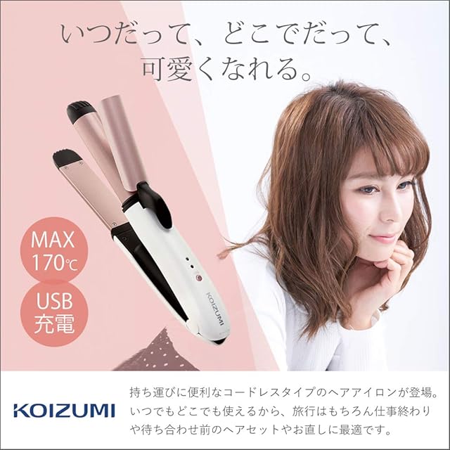 コイズミ カール&ストレート 2WAY ヘアアイロン 25mm コードレス 海外対応 USB充電式 ホワイト KHR-7430/W
