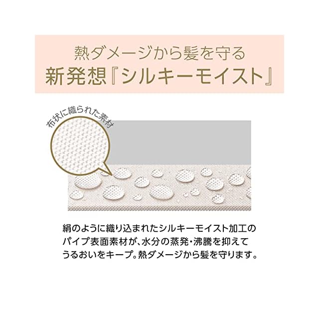 水分の蒸発を抑え、髪への熱ダメージとうるおいを守るシルキーモイスト加工プレート。