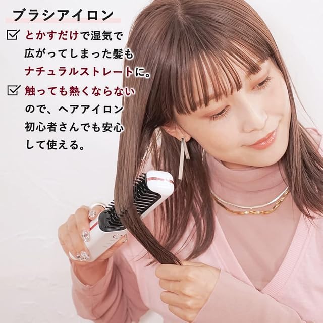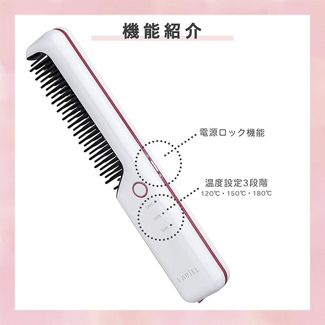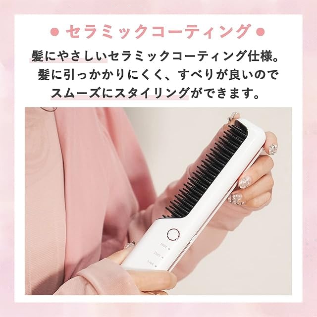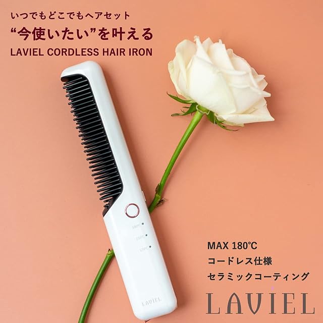商品名:LAVIEL コードレス ブラシアイロン ミニ ヘアアイロン USB充電式 コームアイロン 3段階温度調節 MAX180℃ 持ち運び ホワイト LV-CL-BI