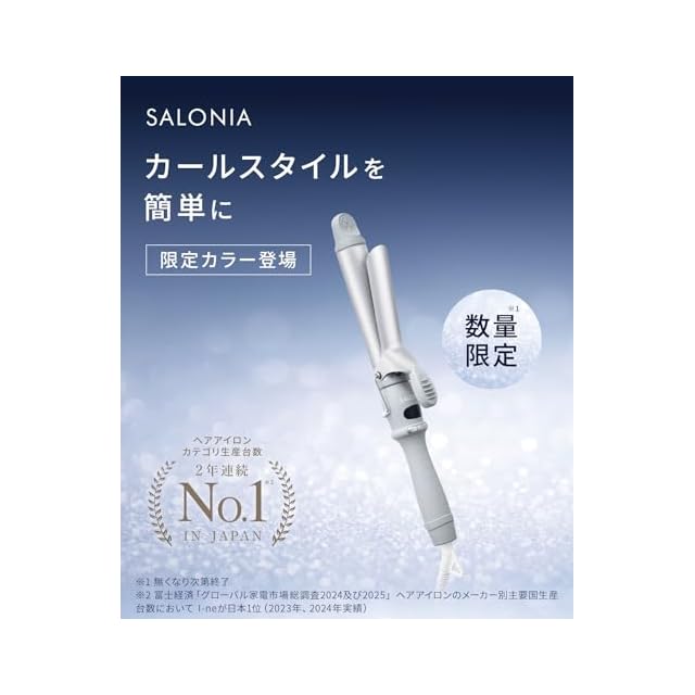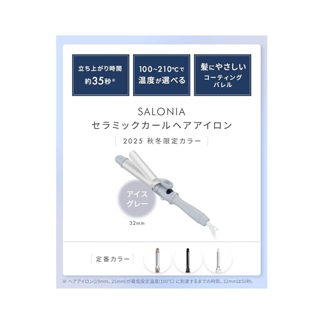 【2025年秋冬限定カラー】 SALONIA サロニア セラミック カール ヘアアイロン コテ 32mm 海外対応 SAL24117GR サイレント アイスグレー