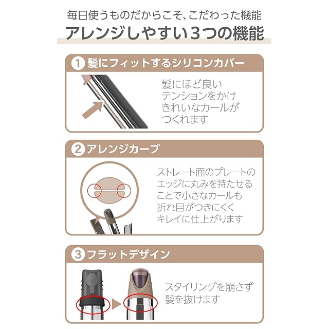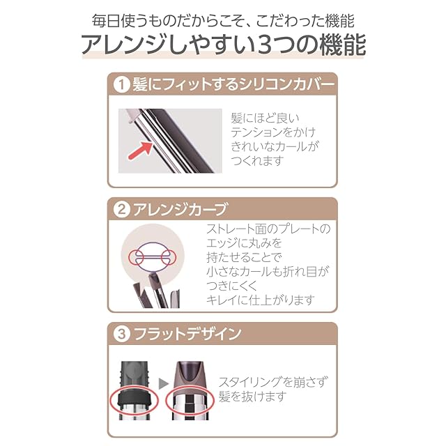 〈ストレート側〉すべりの良いナノセラミックコーティング〈カール側〉適度なキャッチ力で巻きやすいミラーコーティング