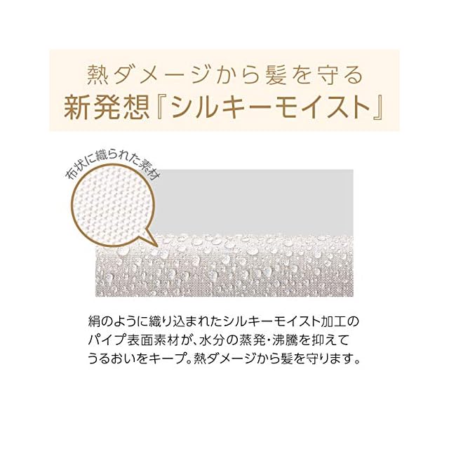 髪にやさしくなめらかなシルキーモイスト加工のロングパイプ。水分の蒸発を抑え、髪への熱ダメージとうるおいを守ります。