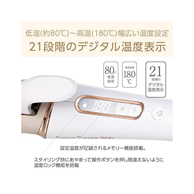 設定温度が記録されるメモリー機能が搭載された、21段階のデジタル温度表示(約80~180℃)で、細やかな温度調節が可能。