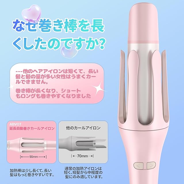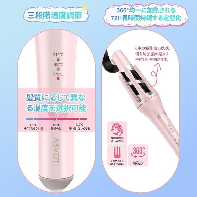 【ABVOT 2024年新発売自動巻きカールアイロン―毎日5分だけで美しくロマンチックなカールを作ることができる!】ワンクリックで美しいカール内巻き・外巻きが作れます。忙しい朝、たった5分でこのオートカールヘアアイロンを使えば、美しいカールが完成し、72 時間の美しさを楽しむことができます。