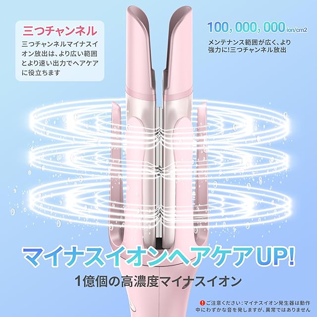 【1億マイナスイオン放出】3つのマイナスイオン放出口、全カールヘアアイロン億万級マイナスイオンで囲まれ、髪をより良くケアし、しなやかで光沢のある髪にします。