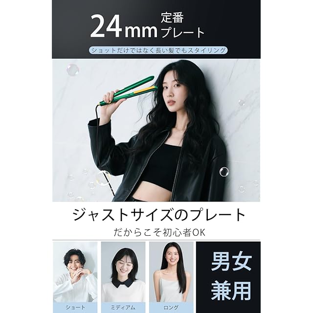 ⑤【男女兼用・初心者も安心のシンプル操作!プレゼントにも最適なヘアアイロン】 男女問わず使いやすいシンプルなボタン操作で、初心者の方でも簡単に扱える設計。プロ仕様の仕上がりを自宅で再現できるため、毎日のヘアケアに大活躍。母の日・誕生日・クリスマスなどのギフトにも喜ばれる、スタイリッシュなヘアアイロンです。