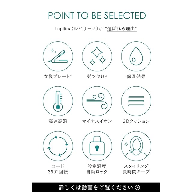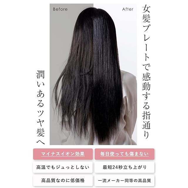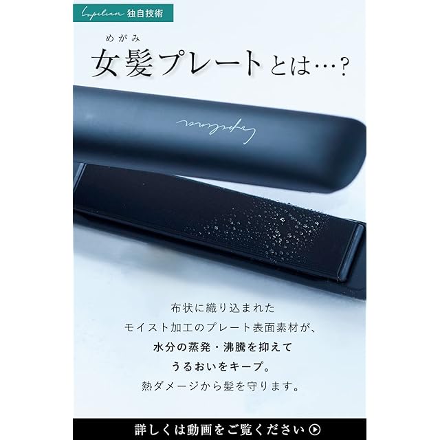 【高級ヘアアイロンの性能をお求めやすく】 高性能ストレートアイロンの、欲しいが全部つまったヘアアイロンです。1番の特徴は、独自の女髪プレートを使用することで、髪にとって最大の敵である水蒸気爆発を起きにくくしています。髪に優しいので、毎日の髪のケアにも安心してお使いいただけます。ルピリーナのストレートアイロンは、数万円もする高級アイロンの性能を、お求めやすい価格で提供しております。