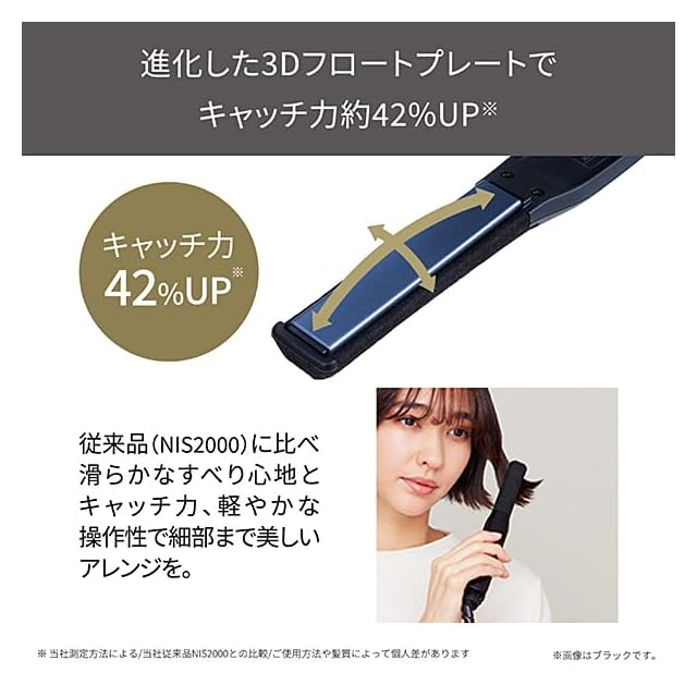 髪の流れに沿ってプレートが前後左右に傾き、髪に密着。軽い力でも髪をキャッチし、軽やかな操作感で細部まで美しいストレートに。