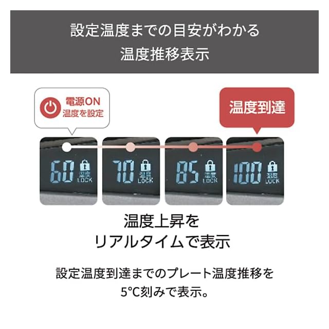 温度幅60~210℃の5℃刻み31段階の細やかな温度調節が可能。髪質やダメージ状態に合わせて温度が選べます。電源ONから18秒※3で立ち上がるから、忙しい朝でも快適にご利用いただけます。※3 100℃到達時間(最高温度設定時)