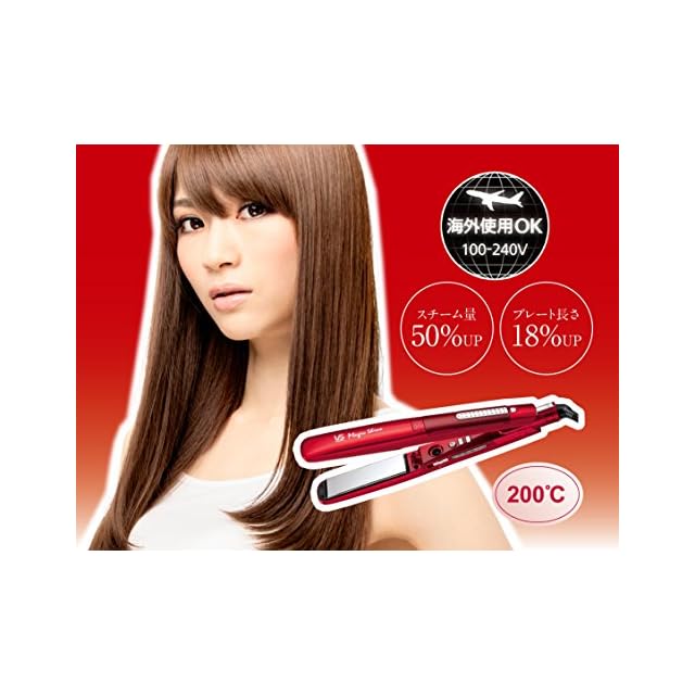 ヴィダル サスーン ストレートアイロン マジック シャイン スチーム&マイナスイオン 海外対応 4段階温度調節 レッド VSS-9500/RJ