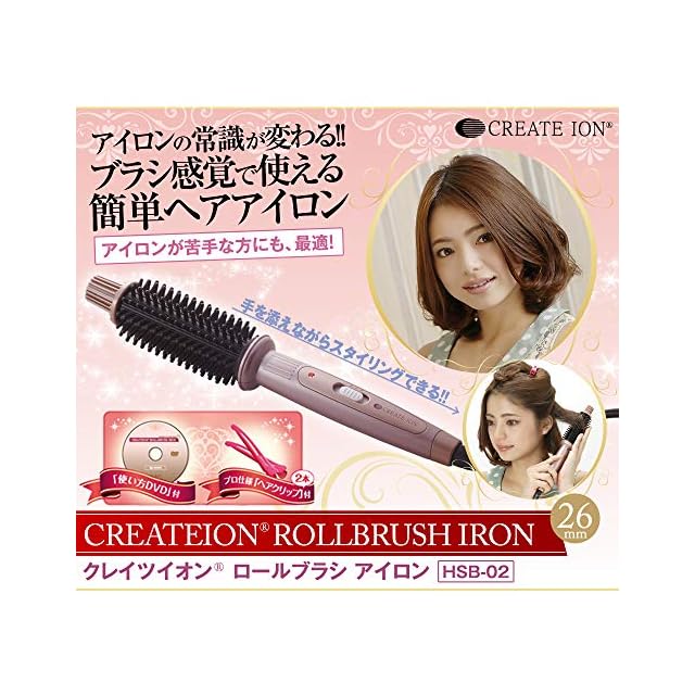 CREATEs ION クレイツ イオン ロールブラシアイロン 26mm HSB-02 ヘアアイロン 2段階温度調節 巻き髪 カール ボリュームアップ 海外兼用