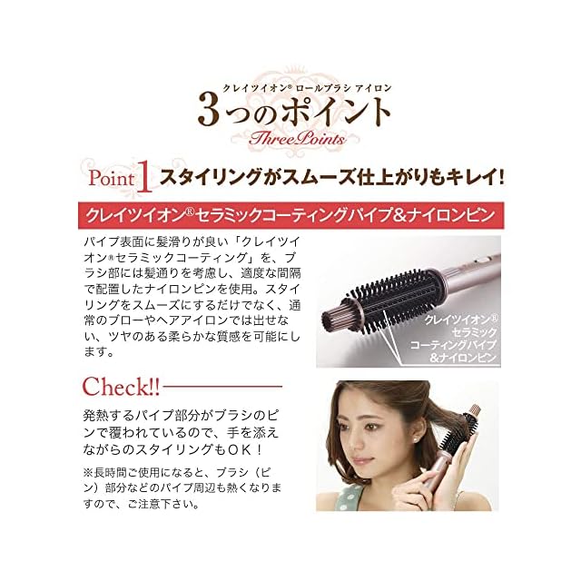 【楽々スタイリング 】パイプ表面の「クレイツイオン セラミックコーティング」& ブラシ部の「適度な間隔で配置したナイロンピン」が、スムーズな髪通り、髪滑りを実現。スタイリングが楽なだけではなく、ブローやヘアアイロンでは出せない、ツヤのある柔らかな質感を可能にします。